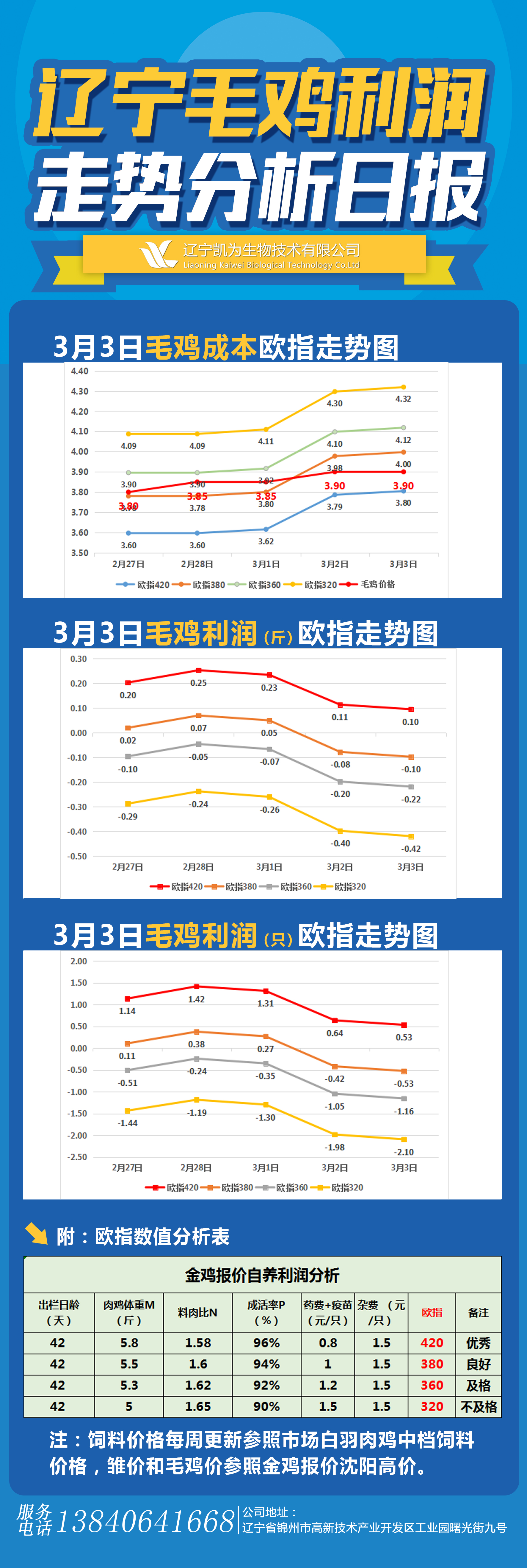 3月3日遼寧地區(qū)毛雞利潤走勢分析圖