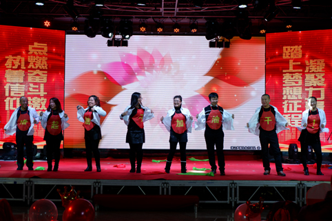 在聯(lián)歡會的現(xiàn)場,華麗舞臺燈光璀璨,背景制作喜氣祥和,一派喜迎新春的美好盛況,那一首首悅耳動聽的歌曲,那一段段優(yōu)美豪放的舞蹈,那一個個風(fēng)趣搞笑的互動小品.......在舞臺上傾情巨獻(xiàn),精彩紛呈,掌聲與喝彩此起彼伏,現(xiàn)場氣氛熱烈、喜氣、祥和,凱為人的魅力與風(fēng)采在這一刻光芒四射,凱為人的才藝在這一刻八仙過海?。?br />