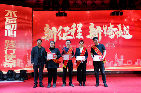 聯(lián)歡的同時進(jìn)入了一年一度公司重頭戲——表彰環(huán)節(jié)。凱為過去一年的輝煌成就,離不開所有凱為人的辛勤付出。首先王總表彰了與凱為共同奮斗的十年、六年的忠誠衛(wèi)士,其次趙總表彰了各區(qū)域的銷售標(biāo)兵及各部門的優(yōu)秀員工,你們是凱為的排頭兵,你們是凱為的中流砥柱,你們是最美凱為人!表彰形式花樣翻新,現(xiàn)金大紅包、歡樂砸金蛋、微信紅包雨........一份份禮品、一個個紅包、一次次表彰,都彰顯著凱為人披荊斬棘不負(fù)韶華的拼搏與奮斗!都書寫著凱為人實現(xiàn)愿景不辱使命的成就與輝煌?。?br />